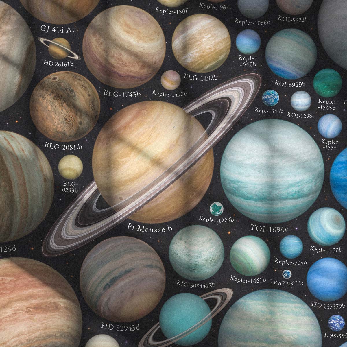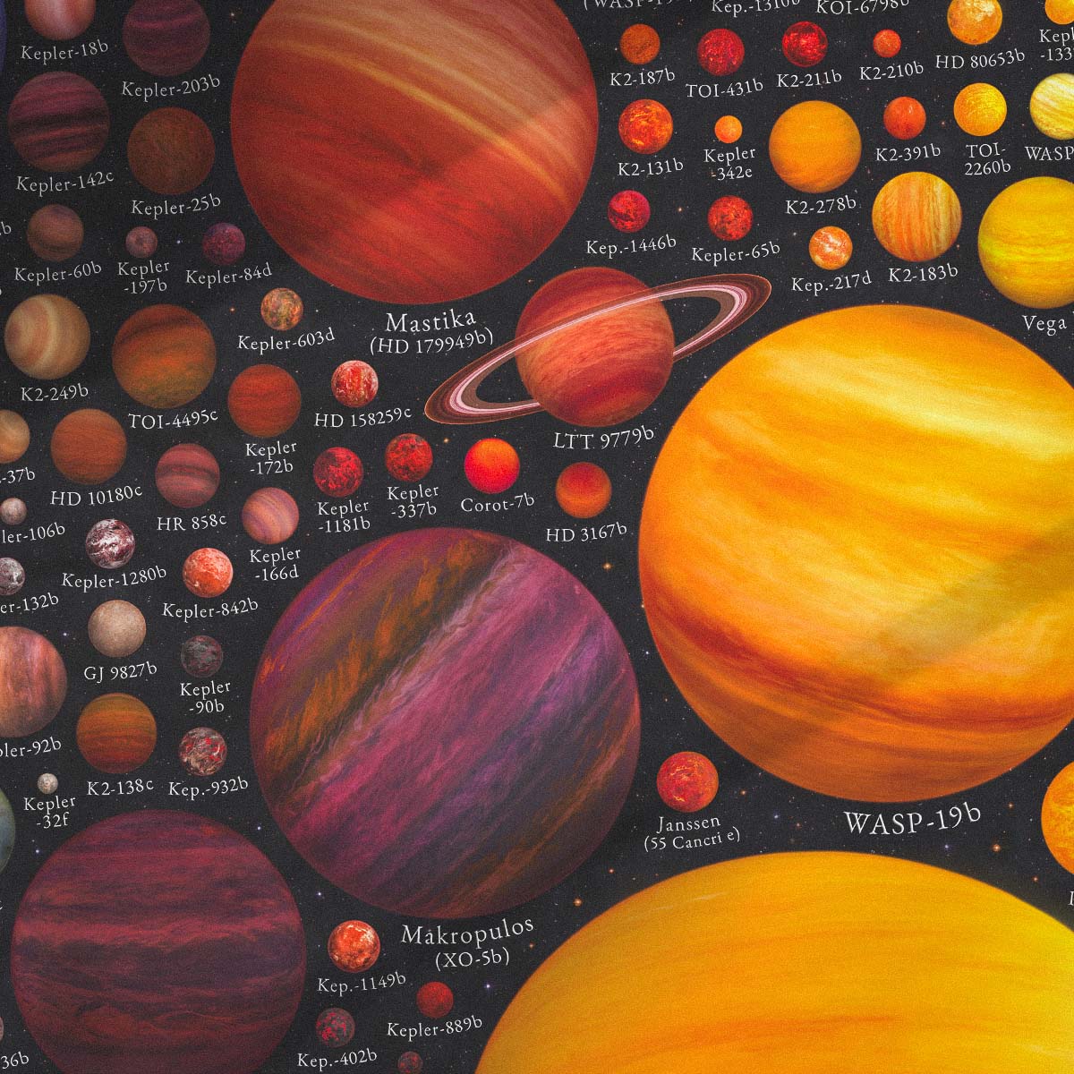 Every planet on this map is based on real data, bringing an artistic yet scientifically accurate representation of our expanding knowledge of the universe.