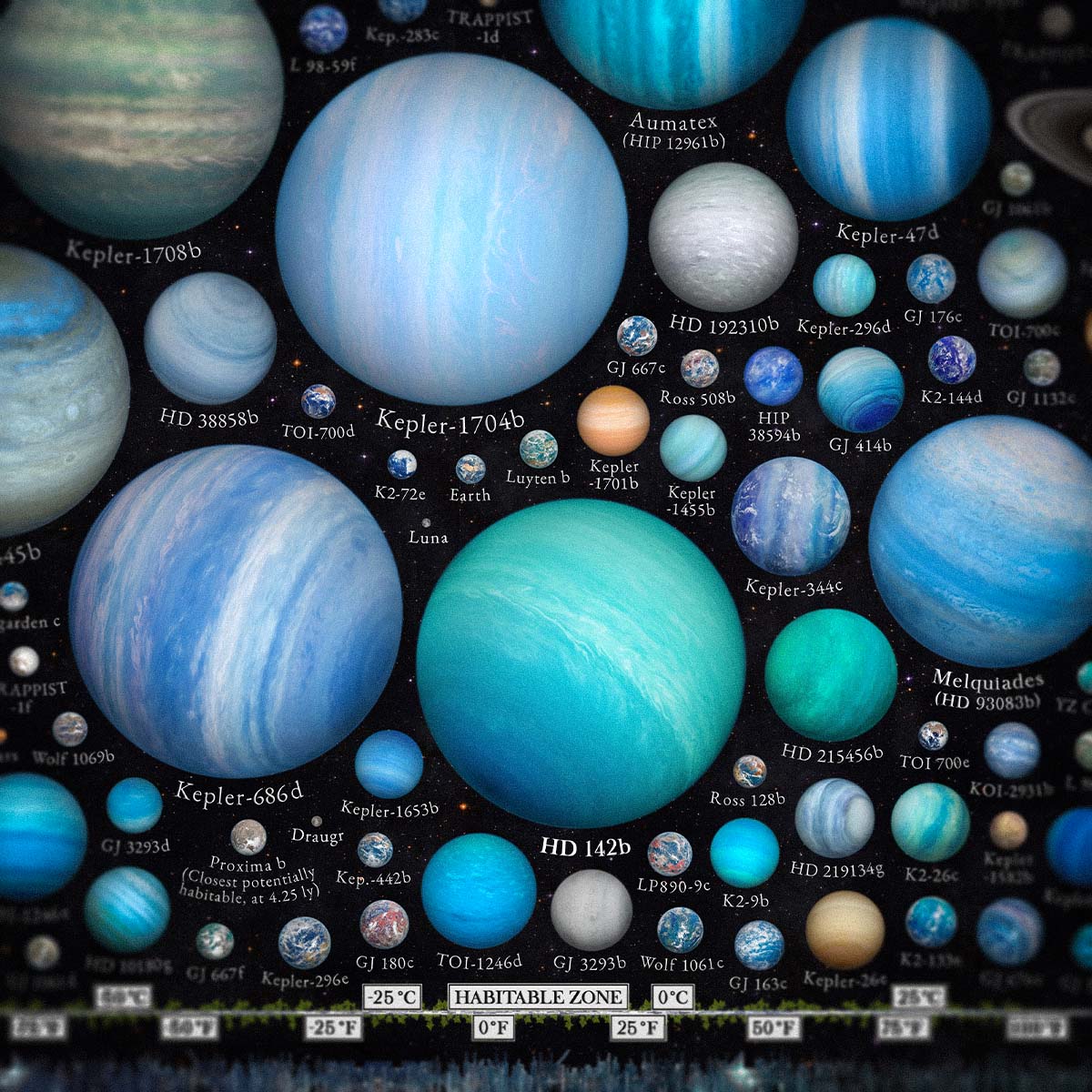 Martin Vargic spent months meticulously researching and designing Exoplanet Zoo. Each planet's size and color are based on actual astronomical data, making this map not just a piece of art but also a scientifically accurate representation. Martin’s work brings the distant universe closer to home, allowing you to explore worlds beyond our solar system with unparalleled clarity.