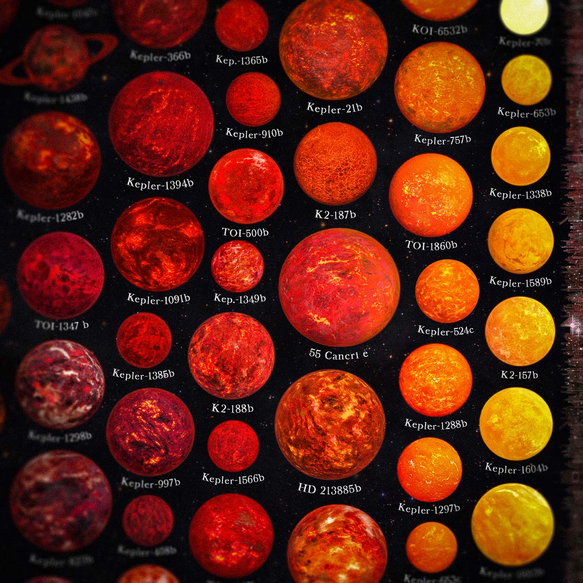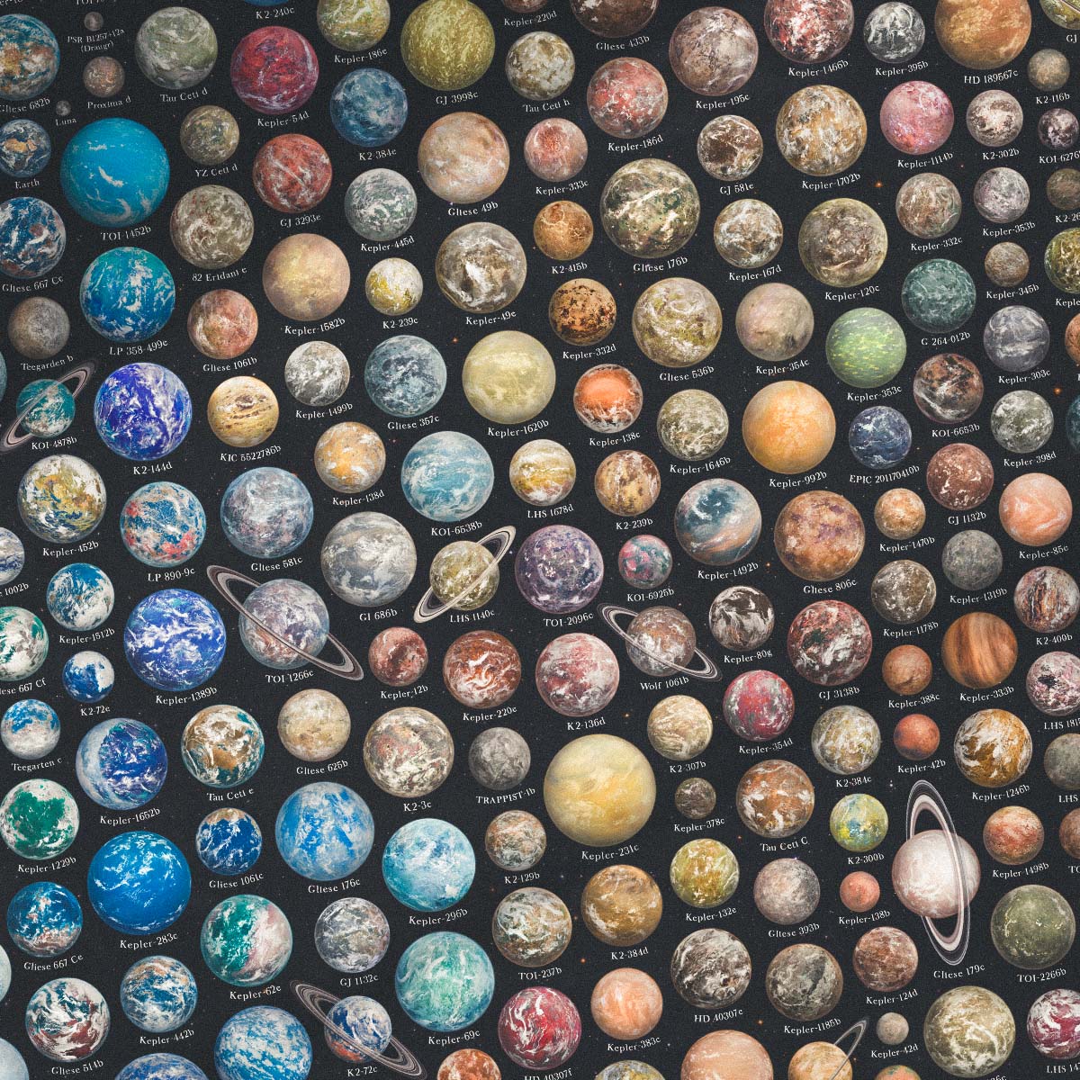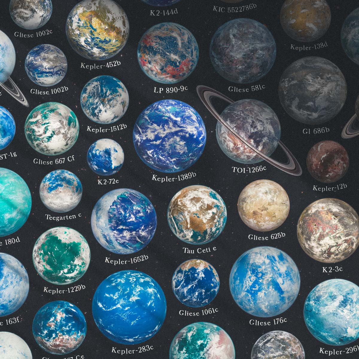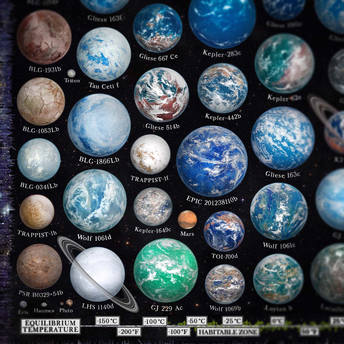 Featuring nearly 900 exoplanets, this poster is an intricate masterpiece that showcases the galaxy’s most diverse rocky and icy terrains.
