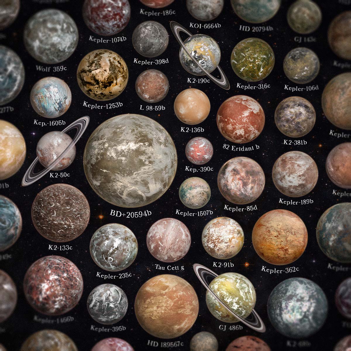 Each exoplanet is based on real data from leading astronomical databases, blending science with artistry to visualize distant worlds in stunning detail.